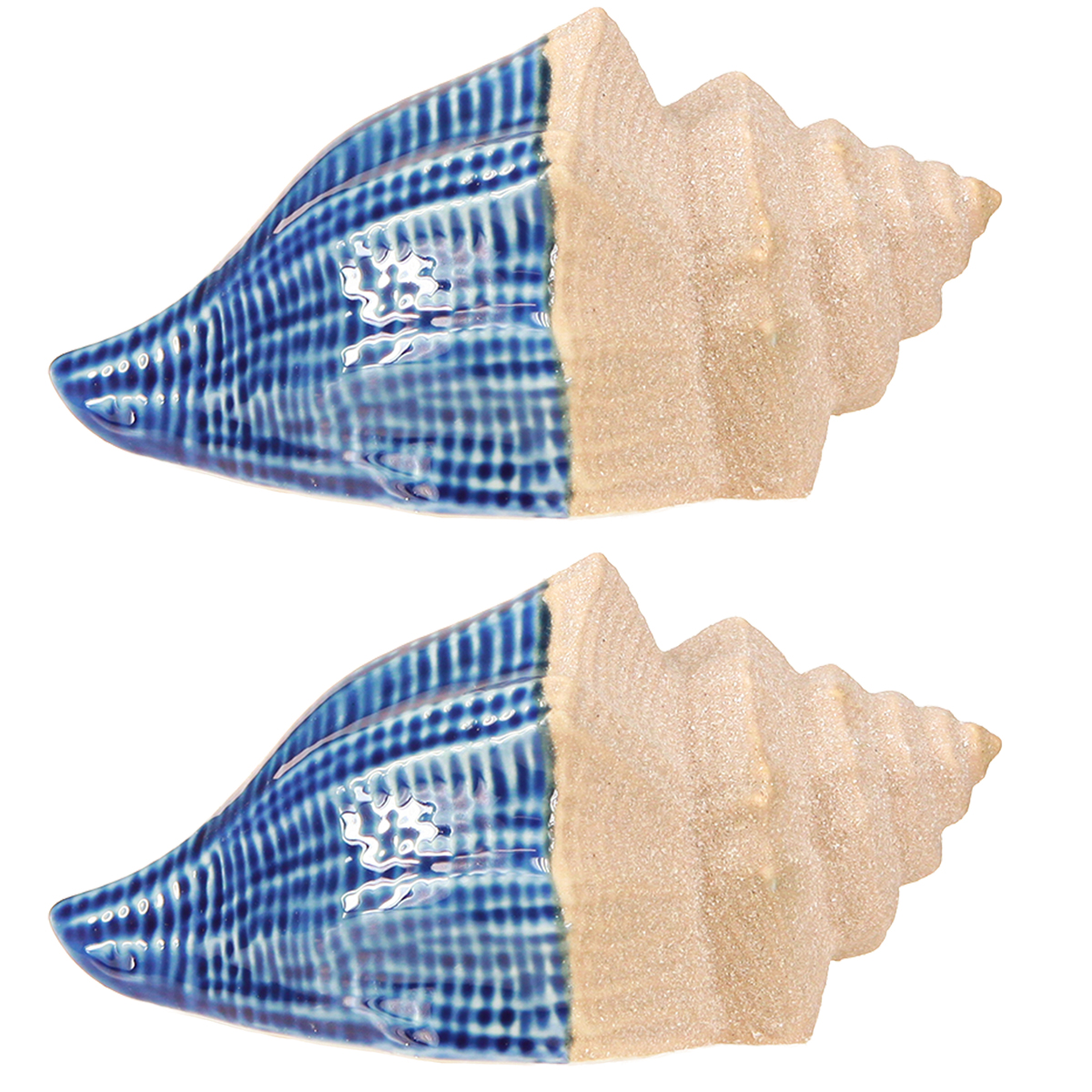 Shell Decoration Maritime Ceramic Blue Beige 16.5×11×9.5cm 2 pcs