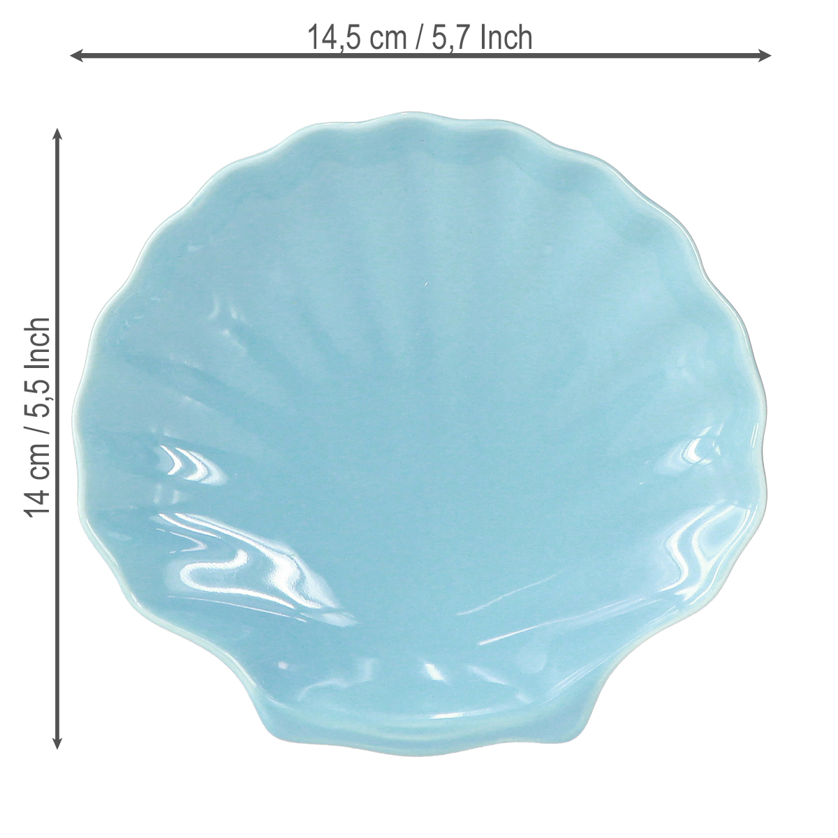 The set of three shell plates in the magical colors of petrol, turquoise and gray-white brings maritime flair straight to your home. Made from high-quality ceramic, these bowls combine functionality and stylish elegance. With a size of approximately 14 cm, they are the perfect addition to your table decoration, be it for summer garden parties or elegant dinner parties. The combination of blue and white reflects the calming influence of the sea and makes this set an indispensable accessory for lovers of maritime style. Whether in the living room, on the dining table or in the bathroom for storing soaps - this set offers countless uses and transforms your home into a coastal paradise. Be inspired by the simple beauty and versatility of these ceramic bowls and add a touch of the sea to your ambience.