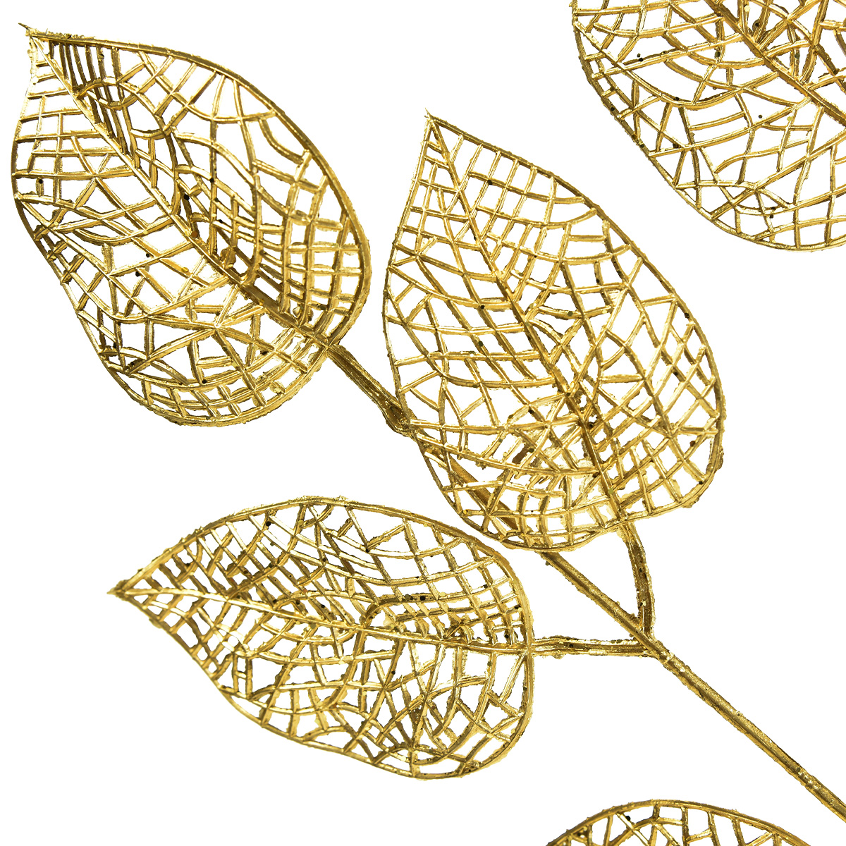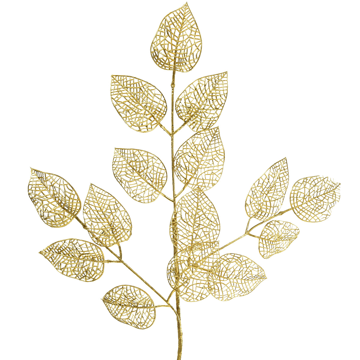 Skeleton Leaves Artificial Willow Leaves Gold Branch Deco 63cm