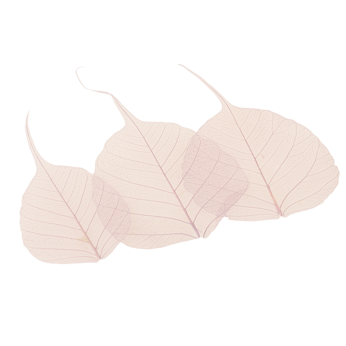 The skeletonized Bodhi leaves in light purple are contained in a box of 200 leaves and are approximately 5 to 15 centimeters long.