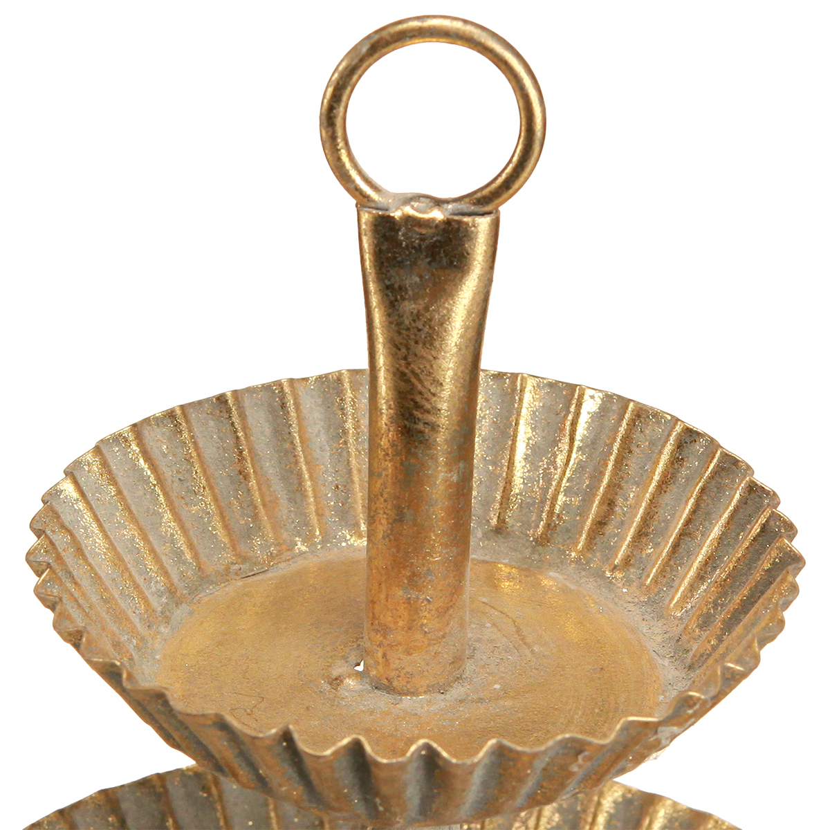 Small metal etagere 2-tier antique gold Ø13cm H16.5cm