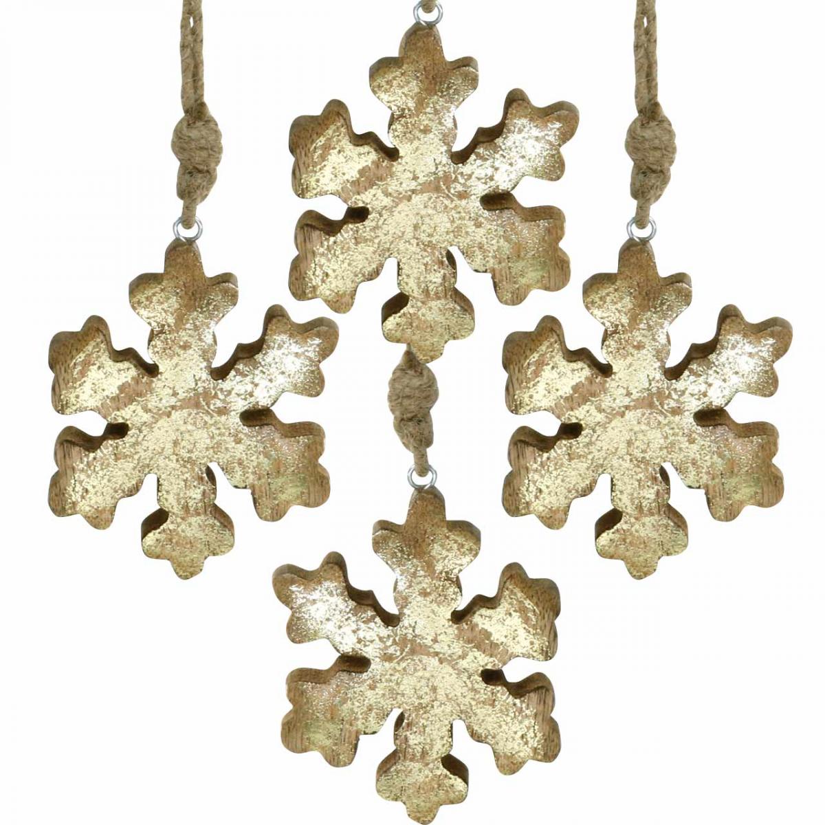 Snowflake mango wood natural, golden snow crystal Ø10cm 6pcs