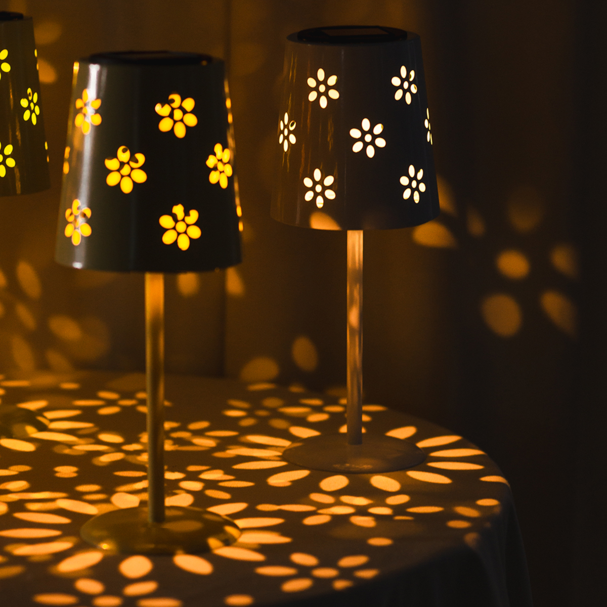 Solar-powered table lamp with LED – Atmospheric lighting in a floral design