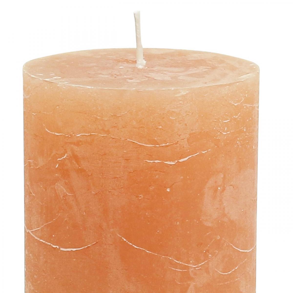 Solid-color pillar candles, orange peach, 70x100mm, set of 4. High-quality candle decoration. Long burning time.