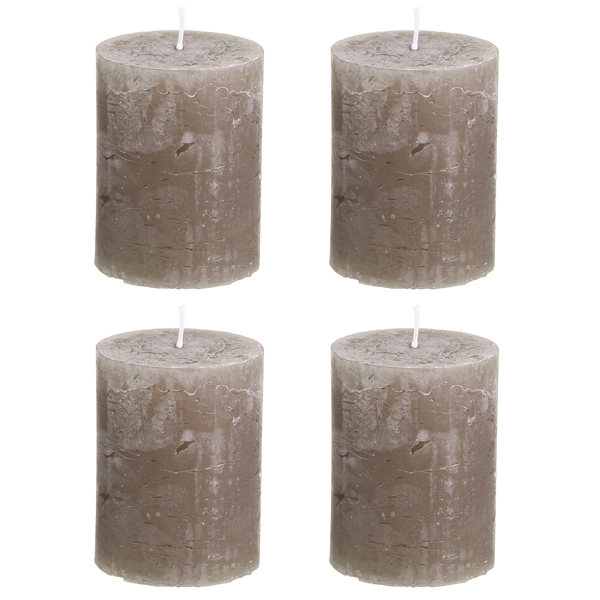 Product name: Solid-colored brown pillar candles 60×80 mm, set of 4. Rustic decorative candles for a cozy atmosphere.