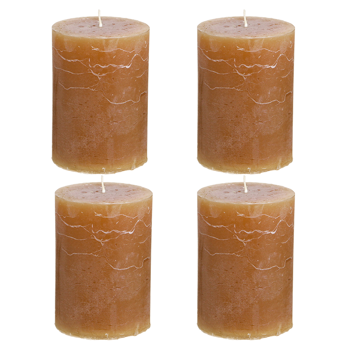 Solid-colored caramel pillar candles 70×100mm Set of 4 - Rustic decoration, long burning time, brown candles for coziness