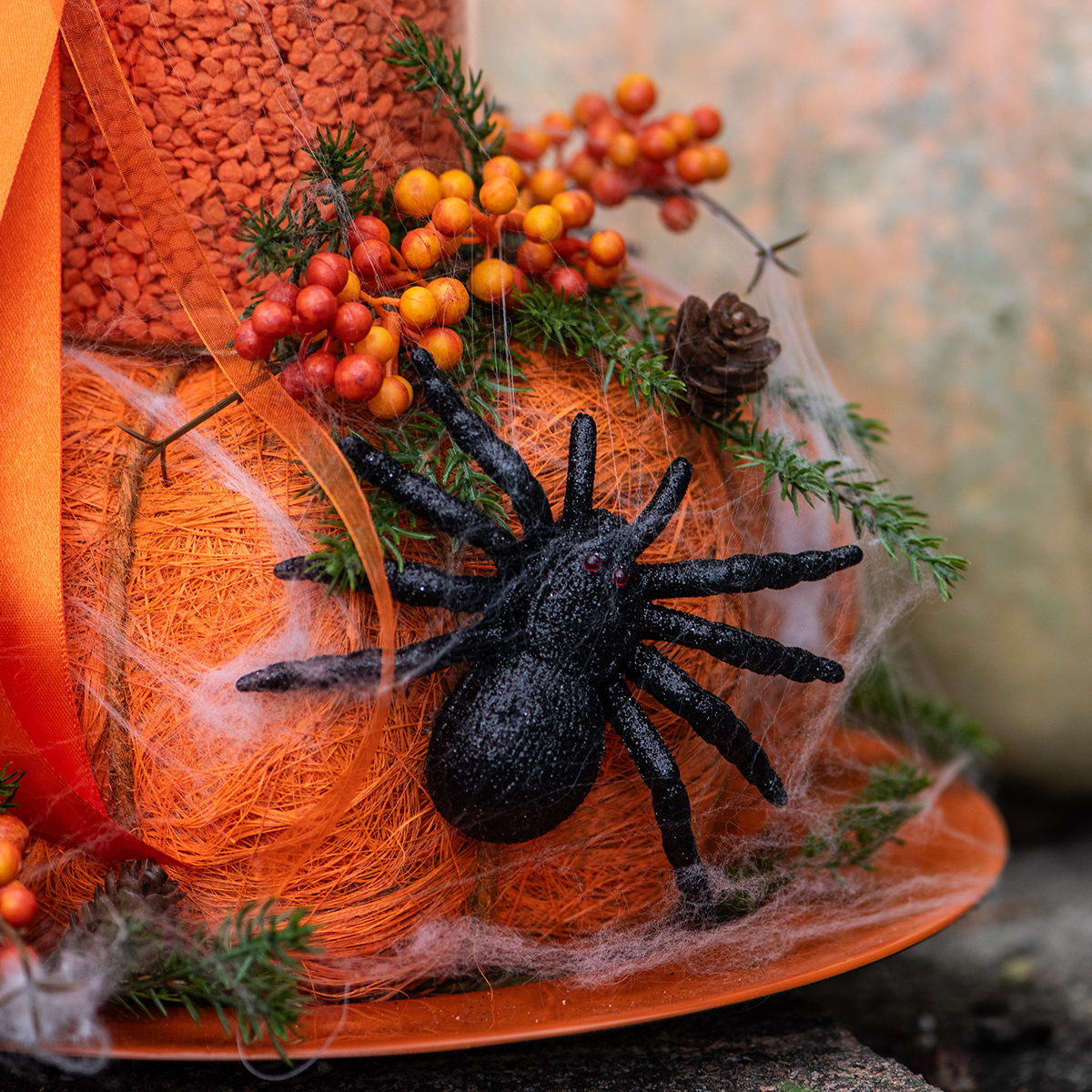No matter where or how you place spiders and bats, they will definitely catch the eye. You can not only hang the glittering animals in the window or put them on the buffet, you can also use them for your own decoration, for example. Spice up your party or carnival costume with it! Simply attach a hair clip to the underside of the spider with a little hot glue and you have a great horror accessory.
