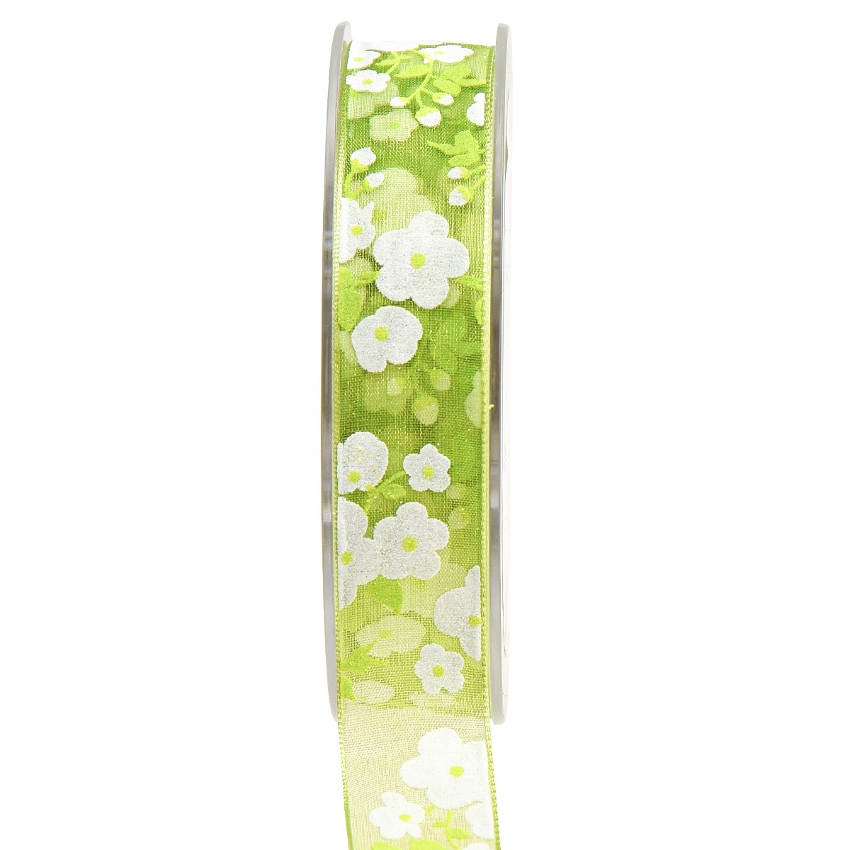 Product name: Spring ribbon with flowers gift ribbon green 20mm 20m