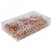 Would you like to try out new decoration ideas for the design of attractive gift packaging this summer? Order our numerous self-adhesive wooden flowers to sprinkle easily online. With a small adhesive point on the back, the decorative flowers can be easily glued to a wide variety of packaging. Or you can make the whole gift with the help of our versatile scatter decorations!