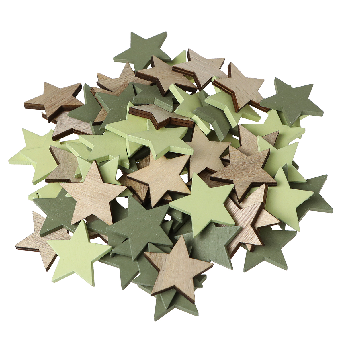 - 72 wooden stars in green and natural