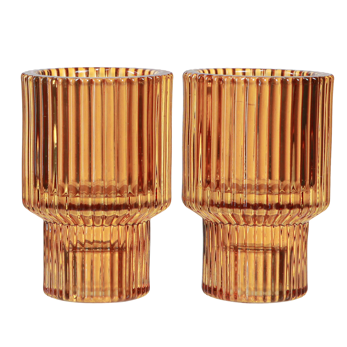 Discover the elegance of our orange glass candle holders, which can be used as both tealight holders and candle holders. These versatile glass candle holders will create a warm and cozy atmosphere in your home, whether for festive occasions or everyday use. Their retro-inspired design with fluted sides will add nostalgic charm to any room and is sure to attract attention.