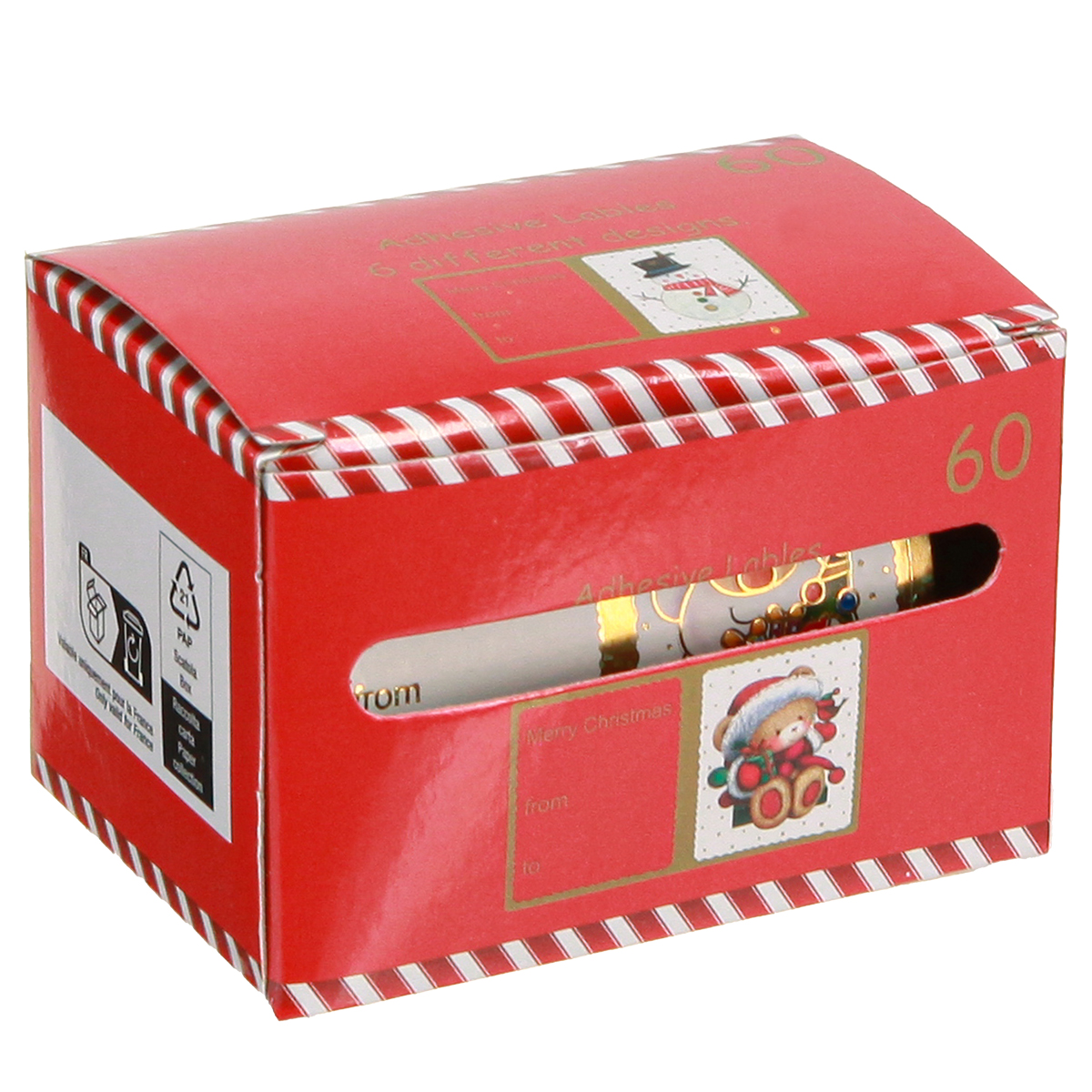 Our Christmas labels on a practical roll of 60 have a size of around 5.5cm × 3.3cm. They are versatile and impress with their lovingly designed, cheerful Christmas motifs. From candles to teddy bears - choose the right motif for your gift from six different designs. The labels with a gold border offer space for the names of the giver and the recipient, giving each present a personal touch.