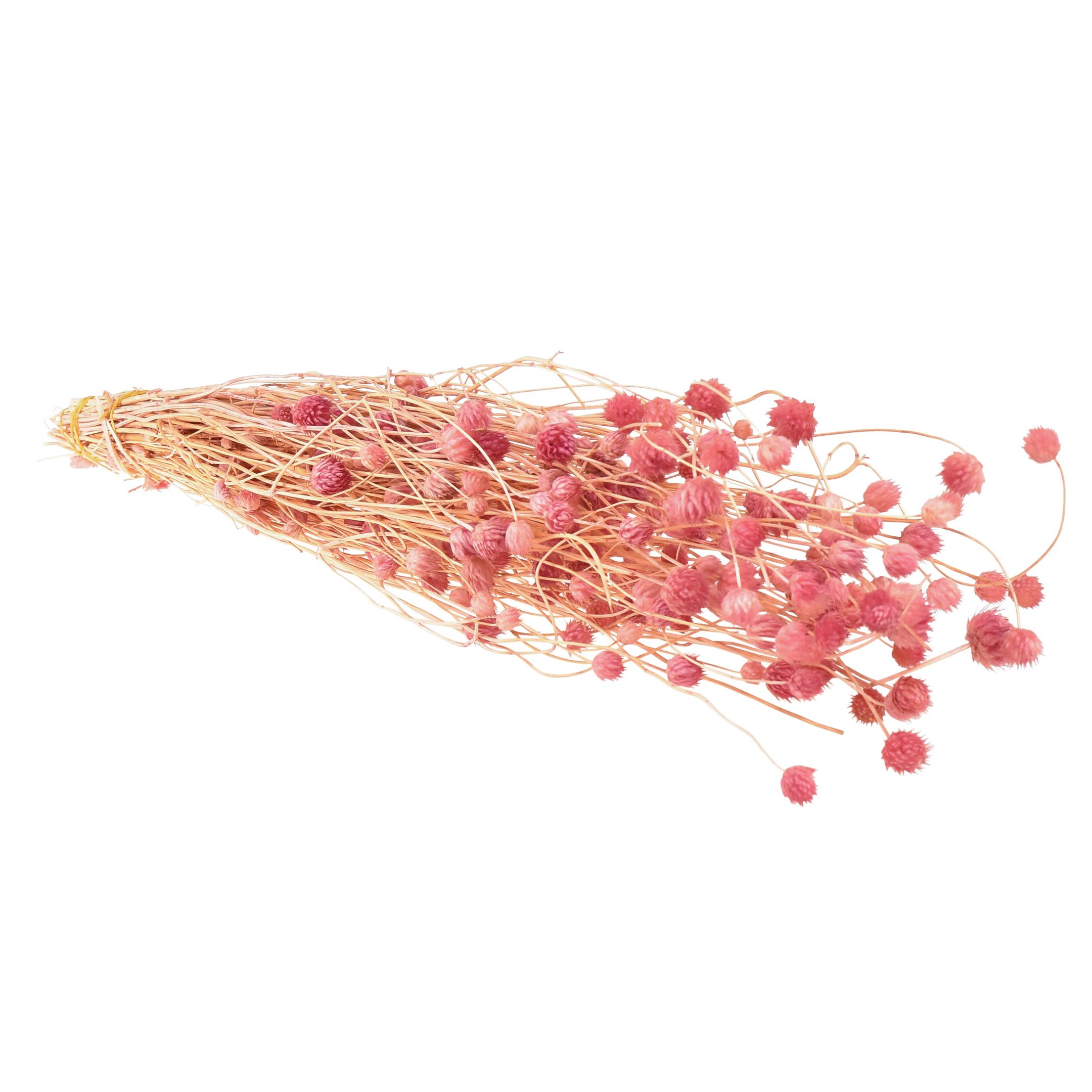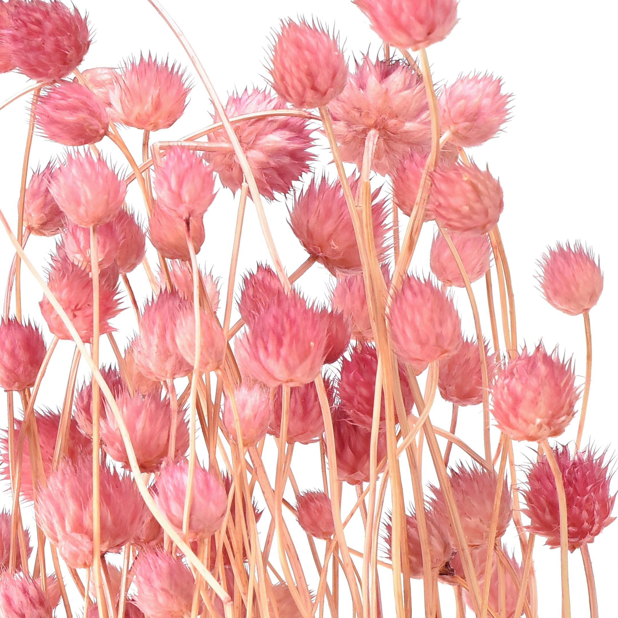 In old pink, the strawberry thistle looks very delicate and the transitions between the intensely colored flowers and the partly natural-colored stems appear very natural. The flower heads, which are round at the bottom, taper slightly towards the top of this thistle, which is not at all prickly. These dried flowers are called strawberry thistle.