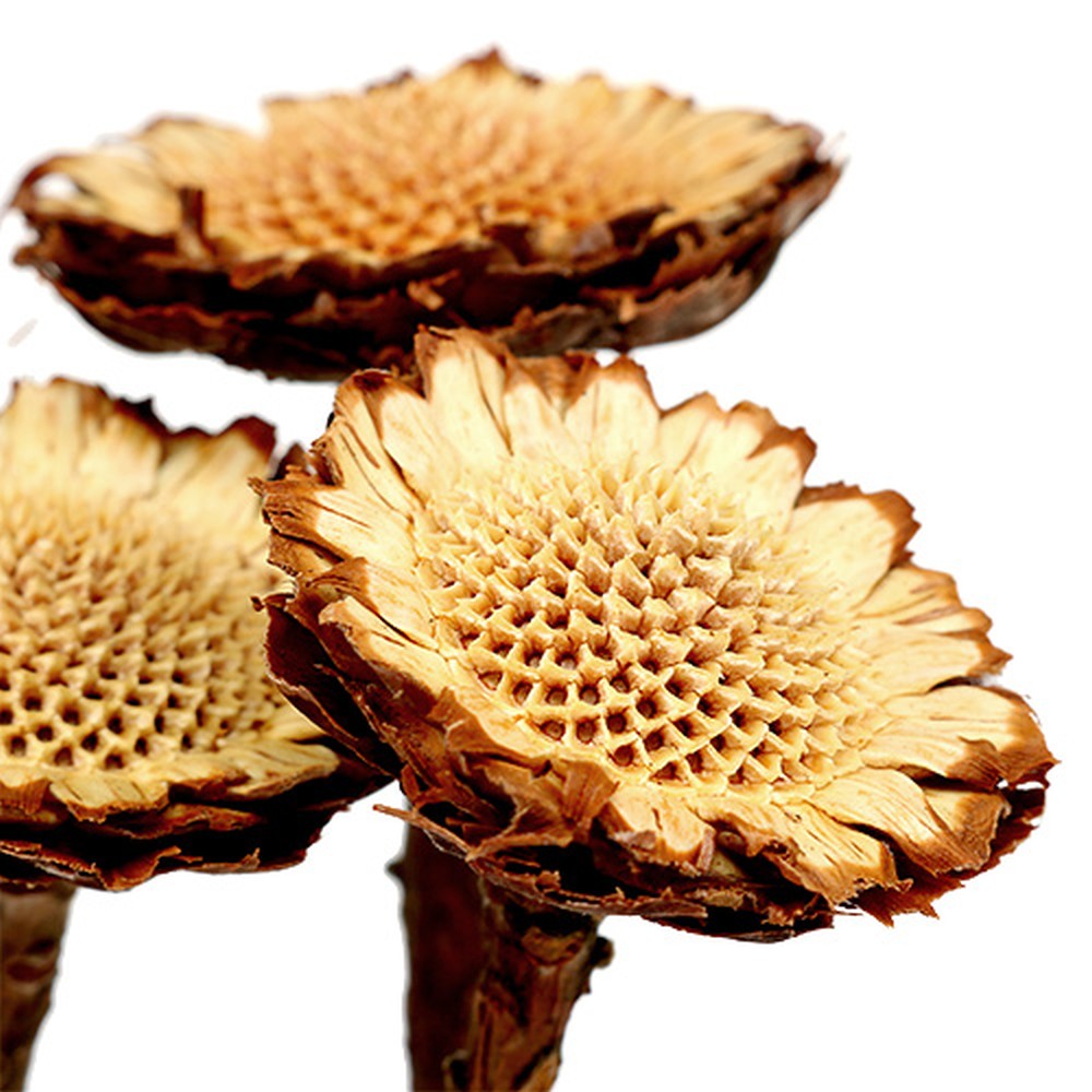 The beautiful rosette fits perfectly into a funeral arrangement, and the glowing flower stands for an everlasting life. In combination with other dried flowers from the Protea genus, you can conjure up graceful and comforting memorial arrangements.