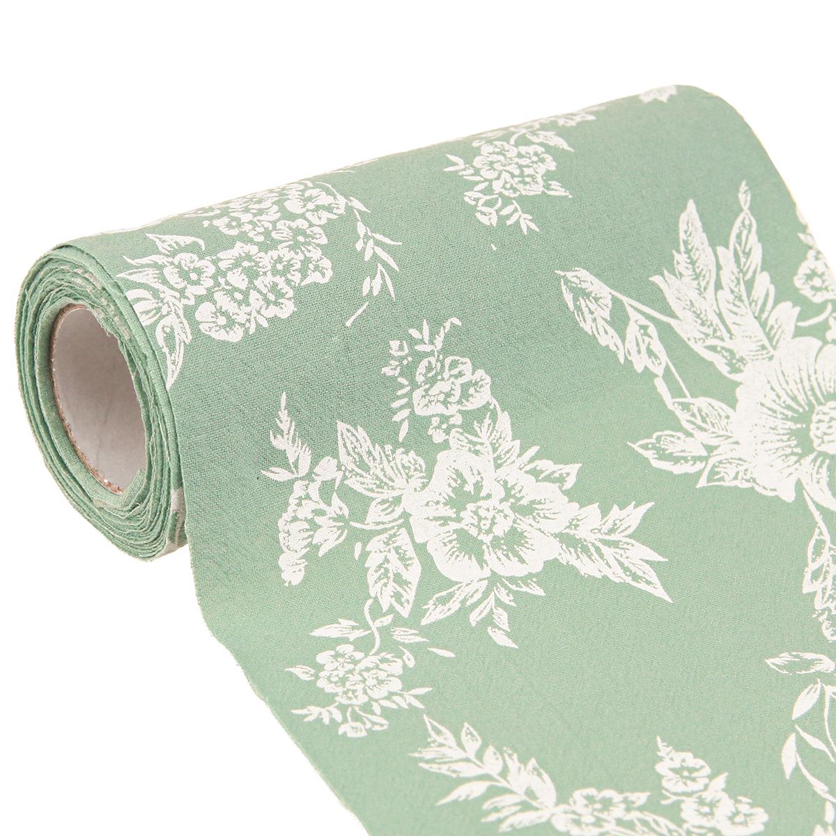 Product name: Table Runner Green Roll Ribbon Flowers Cotton Mint 15cm 3m