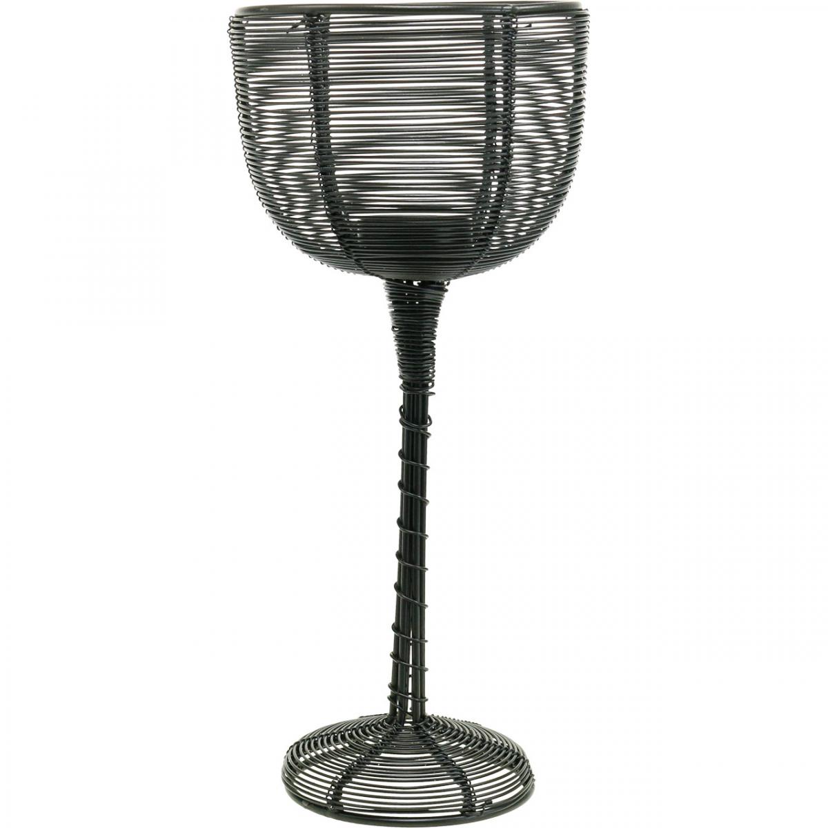 Tea light holder black metal decorative wine glass Ø10cm H26.5cm
