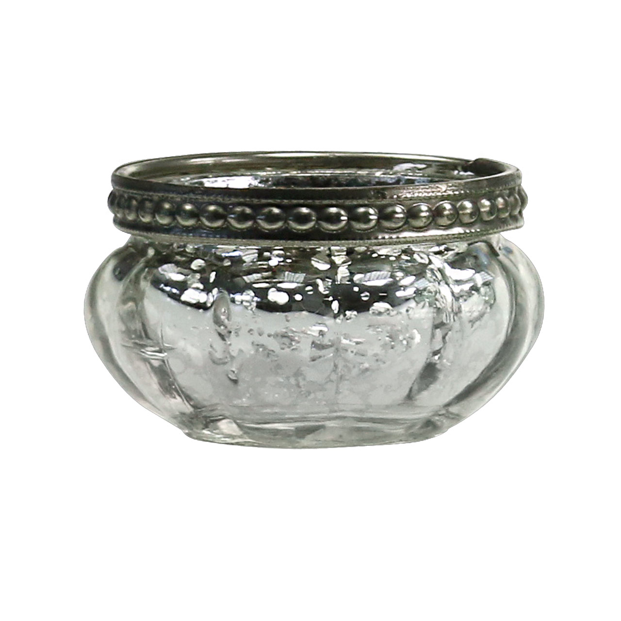 Product name: Tealight glass antique silver with metal rim Ø6cm H3.5cm