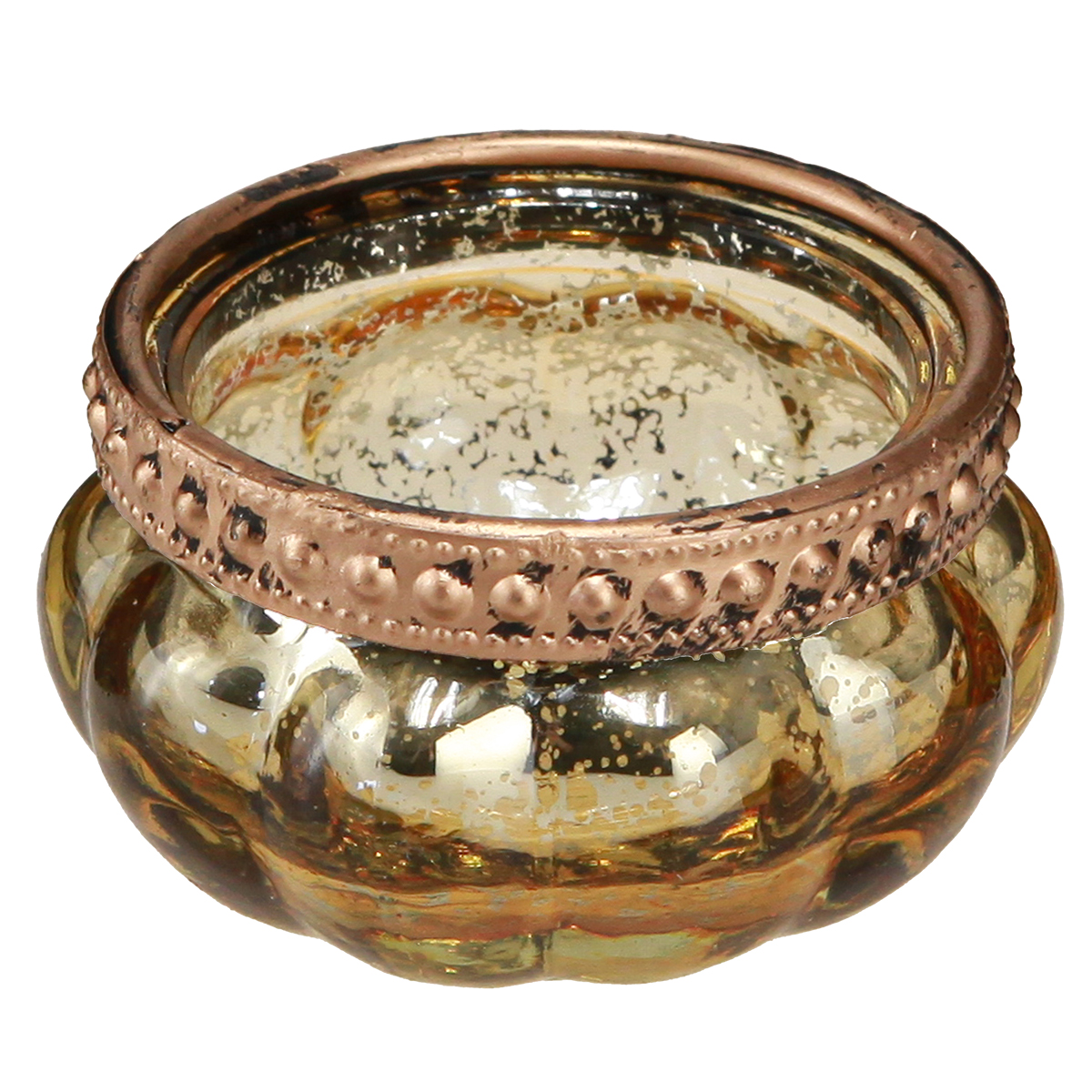 Product name: Tealight glass champagne antique gold with metal rim Ø6cm H3.5cm
