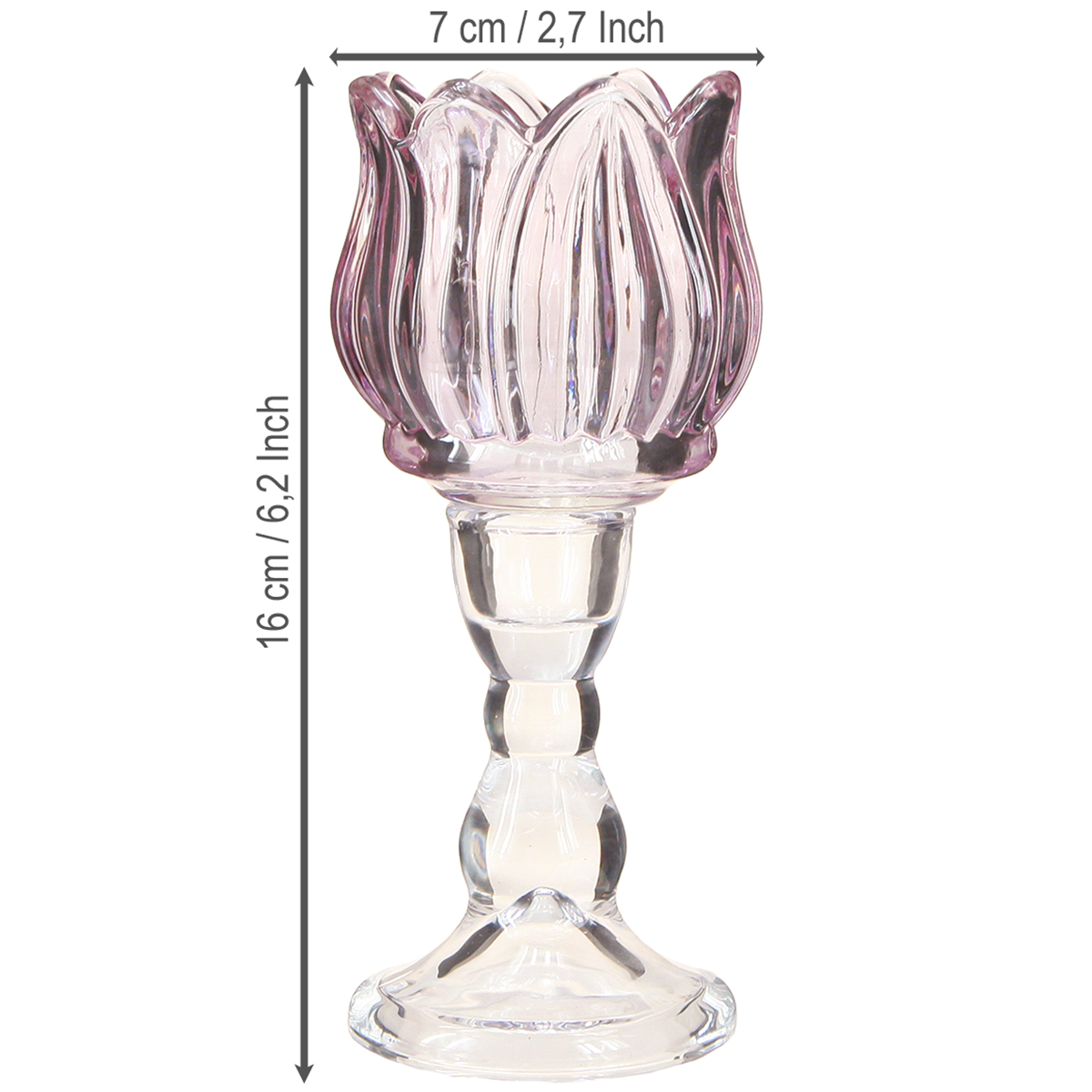 Product name: Tealight glass tulip tealight holder glass purple Ø7cm H16cm 2pcs