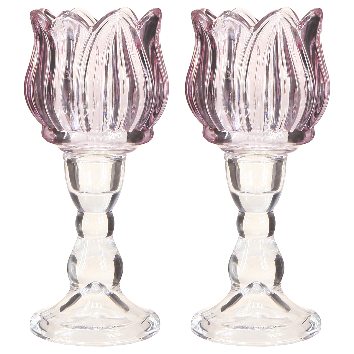 Tealight glass tulip tealight holder glass purple Ø7cm H16cm 2pcs