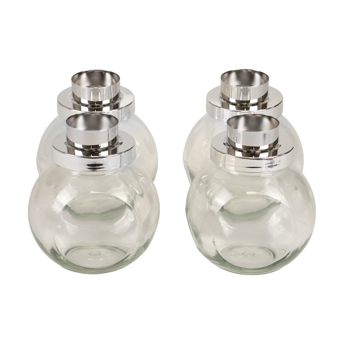 Tealight holder candlestick glass metal silver Ø10.5cm 4pcs