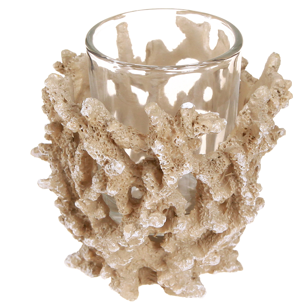Tealight holder coral decoration maritime cream brown H9cm 2pcs