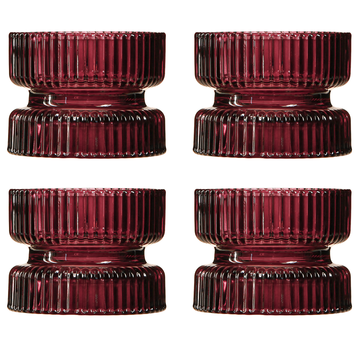 Tealight holder made of ribbed glass in Berry: Elegant accents for your decoration