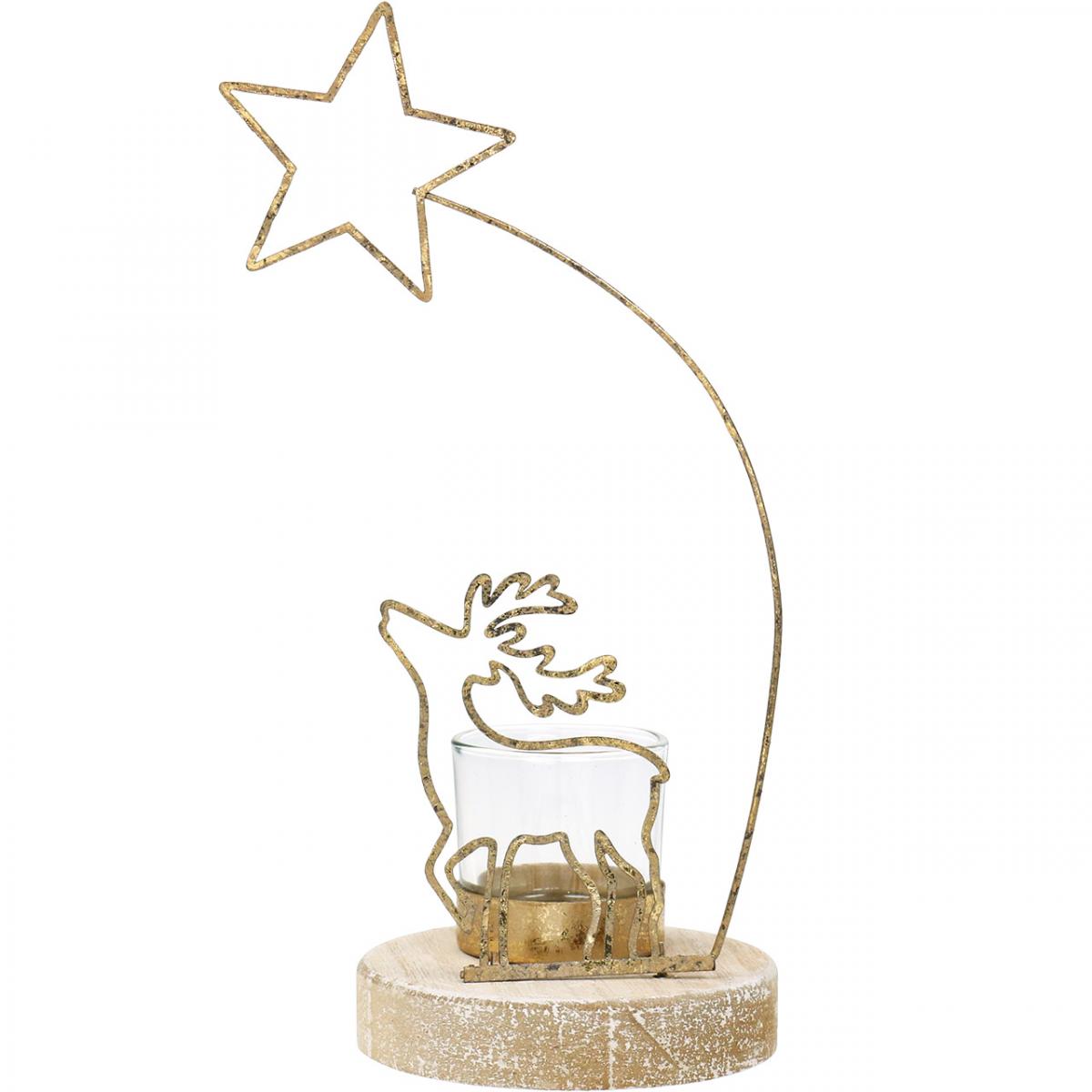 Tealight holder reindeer and poinsettia metal Ø10cm H24cm