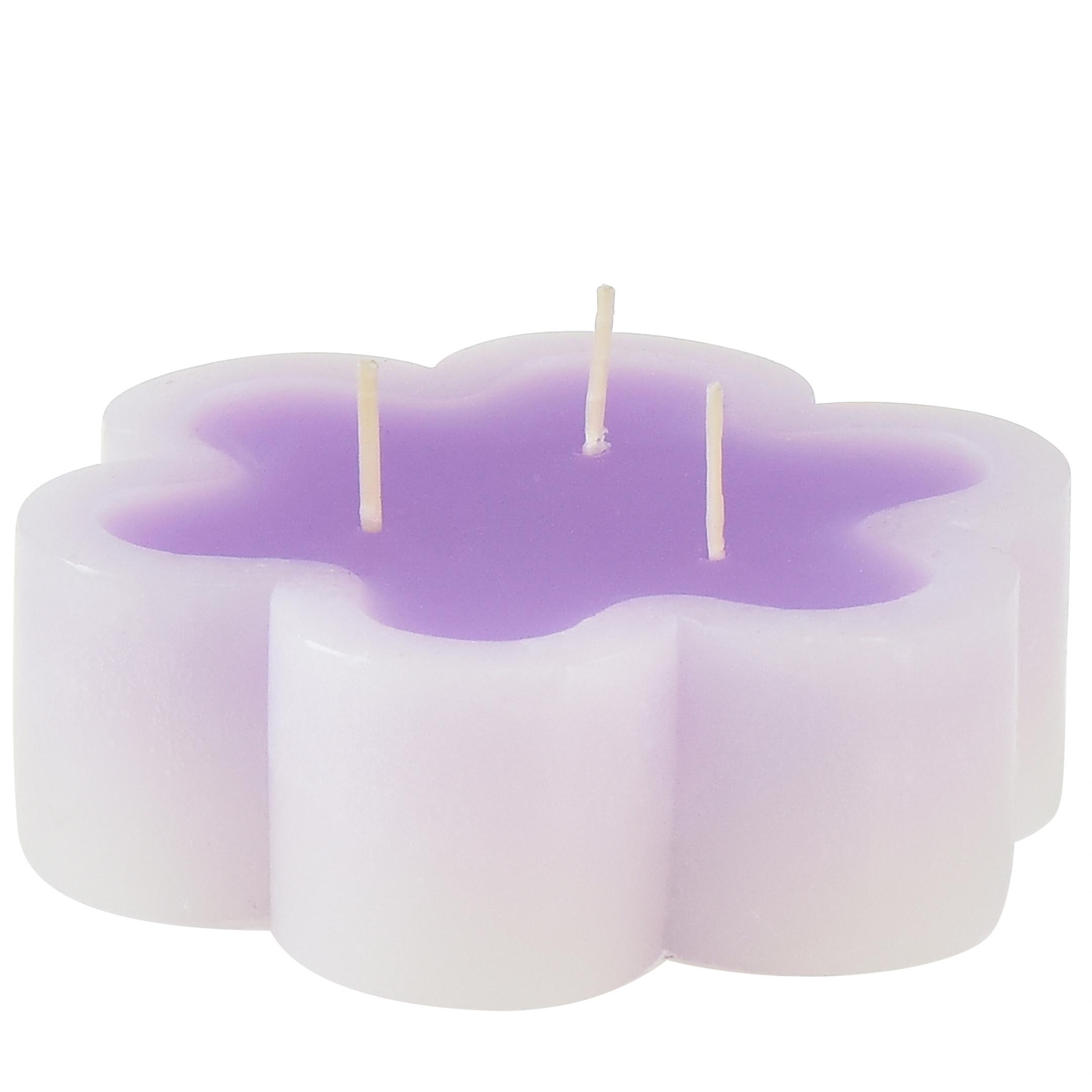 Three-wick candle as a flower candle purple white Ø11.5cm H4cm