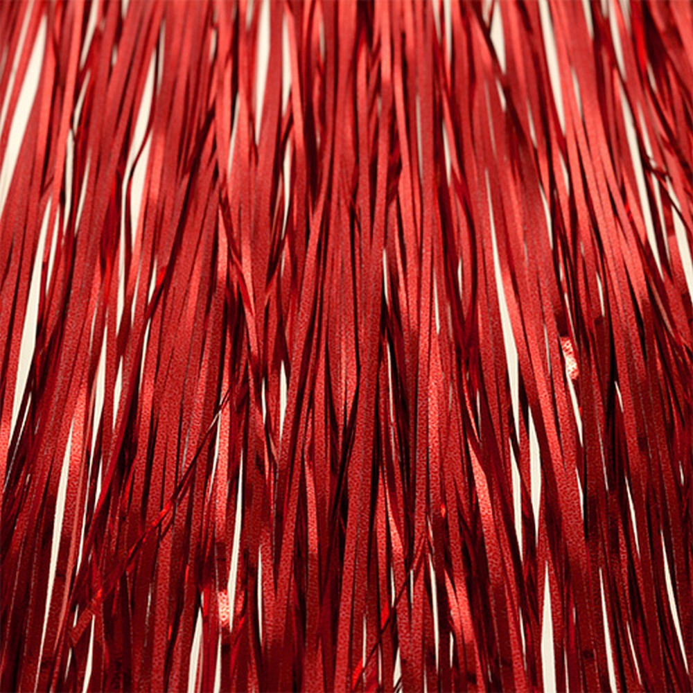 The shiny tinsel in red is on a cardboard hanger and is about 50 centimeters long and about 40 centimeters wide. When you implement your decoration ideas, you can also cut the plastic strands into small pieces with scissors and then distribute them in a really atmospheric way at a Christmas party!