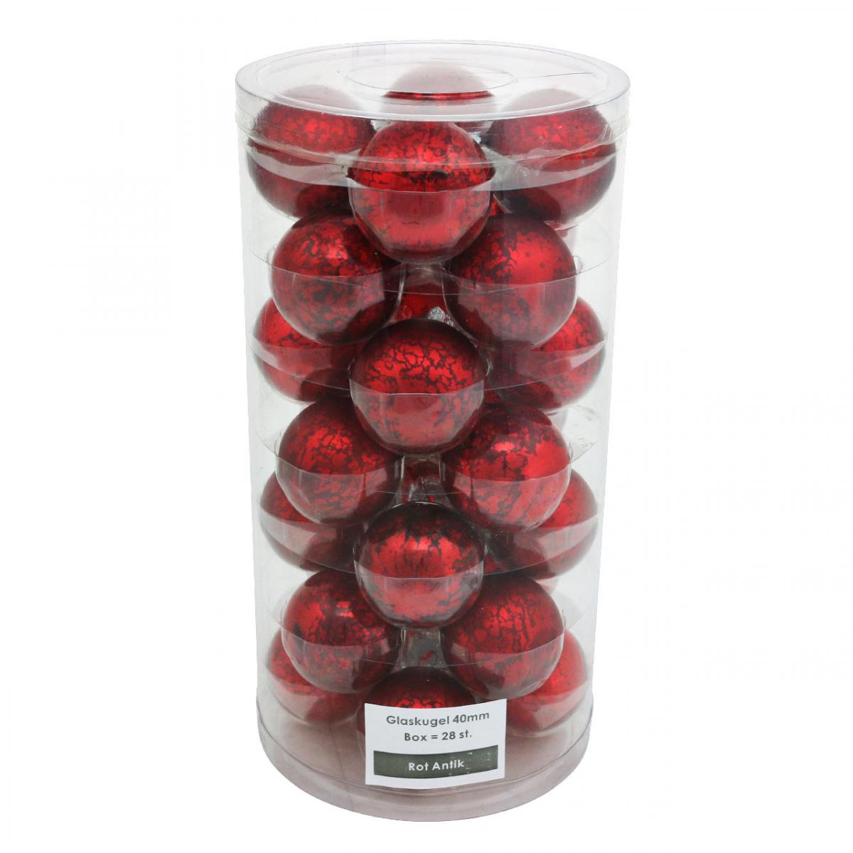 Tree ball, Christmas tree decoration, glass ball red marbled H4.5cm Ø4cm real glass 24 pcs
