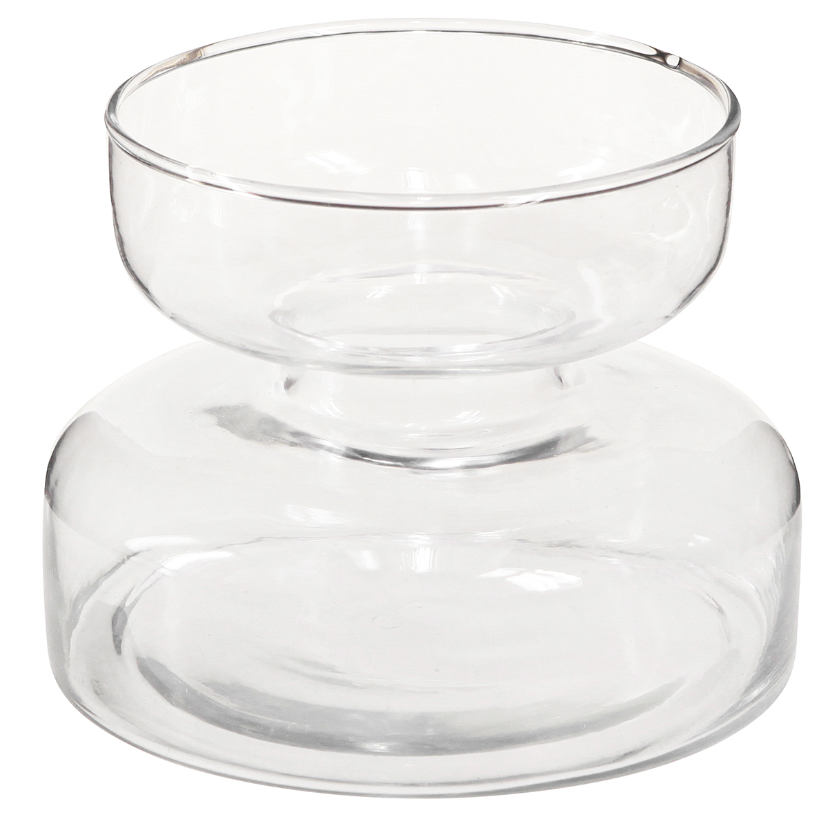 The clear glass vase Rikkie with its round design is a must for anyone looking for a modern yet timeless home accessory. With a diameter of around 13 cm and a height of around 10 cm, it is ideal for small dry arrangements or as an extravagant glass decoration. The open connection between the mouth and the base allows you to fill the interior to the floor. For example, fill the base with decorative sand to place decorations in the bowl-shaped mouth. Small green plants such as succulents can also be wonderfully presented in the decorative vase.