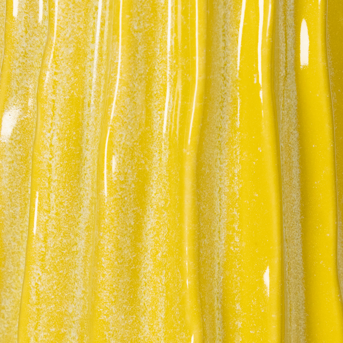 Thanks to its robust material, the vase is easy to care for and durable. The yellow glaze also ensures a water-resistant surface, so you can confidently arrange real flowers in it. Combine the vase with light wood furniture for a harmonious Scandinavian look or use it as a contrast to darker accessories.