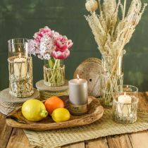 Glass vase with embossed tulip design for interior decoration, 22.5cm