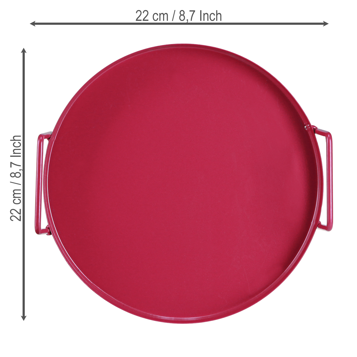 This round metal tray in vibrant red, with a diameter of 22 cm, is not only a real eye-catcher but also exceptionally functional. The matte handles ensure a secure grip and make the tray both handy and practical. Whether you want to stylishly serve drinks and snacks to your guests or showcase your favorite plants, this red tray always makes a great impression. The robust metal surface is easy to clean and boasts impressive durability – simply a reliable companion in every situation.