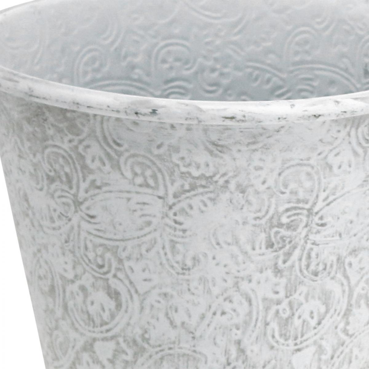 Vessel with ornaments, plant pot, metal pot white Ø18.5cm H18cm