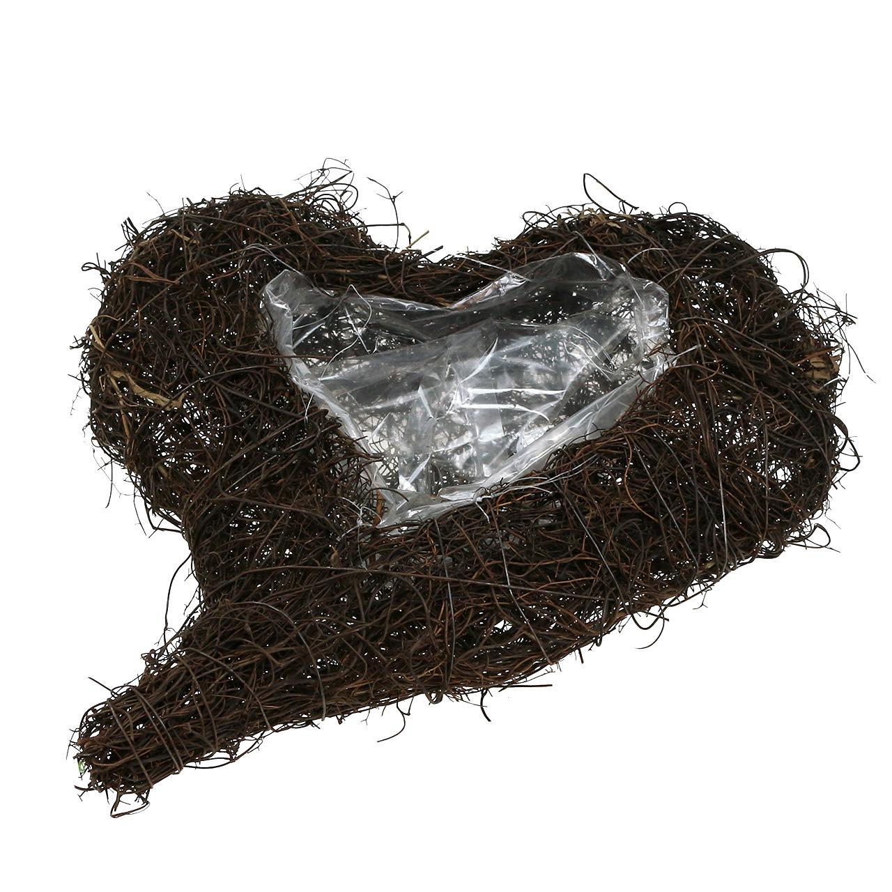 This vine heart for planting in the color natural is a particularly natural planter for funeral flowers. A dense network of filigree vine branches is spun around a sturdy wire frame in the shape of a heart. This gives the planter bowl from the VIANA product range a very rustic appearance, while at the same time it symbolizes eternal love. This makes the decorative heart particularly suitable for planting a grave or as a base for arrangement in funeral flowers. The heart-shaped recess is already lined with plant film, so that you can immediately start to equip the plant heart with a distinctive planting.The whitewashed vine heart measures around 30 x 25 x 8 centimeters. The inner dimensions of the planting area are approximately 13 x 13 x 5 centimeters.