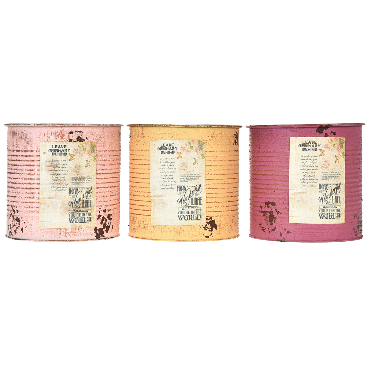 Vintage-style flower pot/tin, set of 3