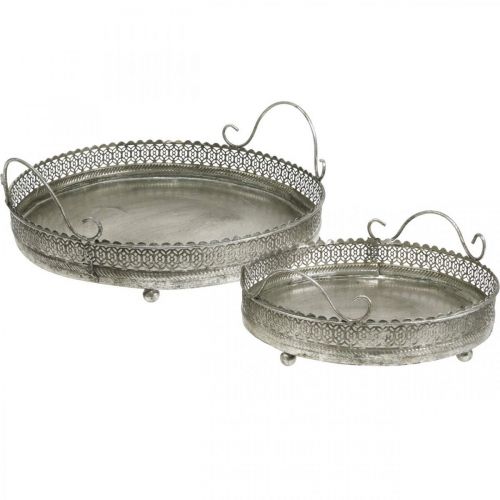 Vintage tray, decorative tray silver, candle tray H6cm Ø31/24cm set of 2