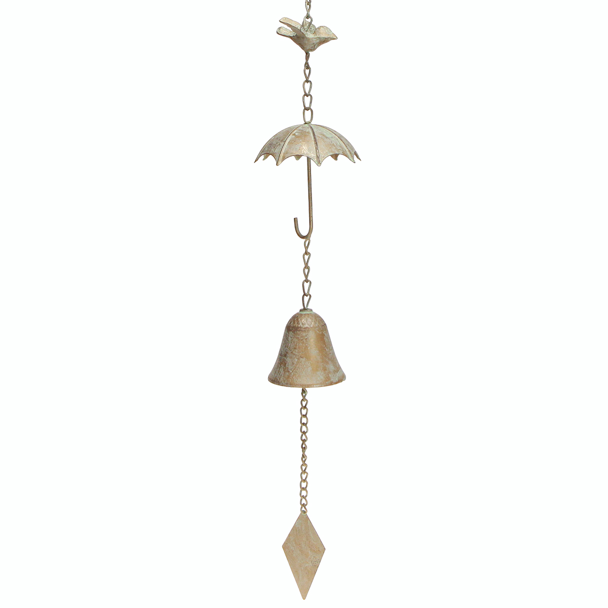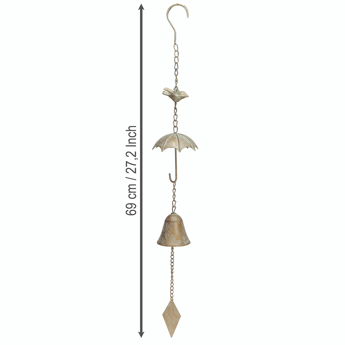 Vintage wind chime metal decoration with umbrella and bell 70cm