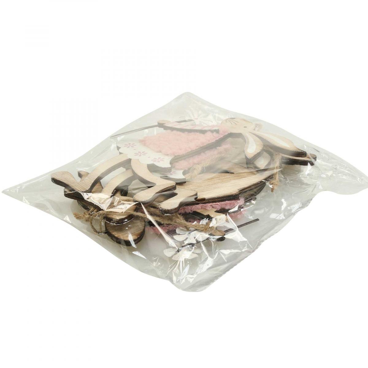 Wall decoration Easter bunny for hanging wood pink 14×19.5cm 4 pcs