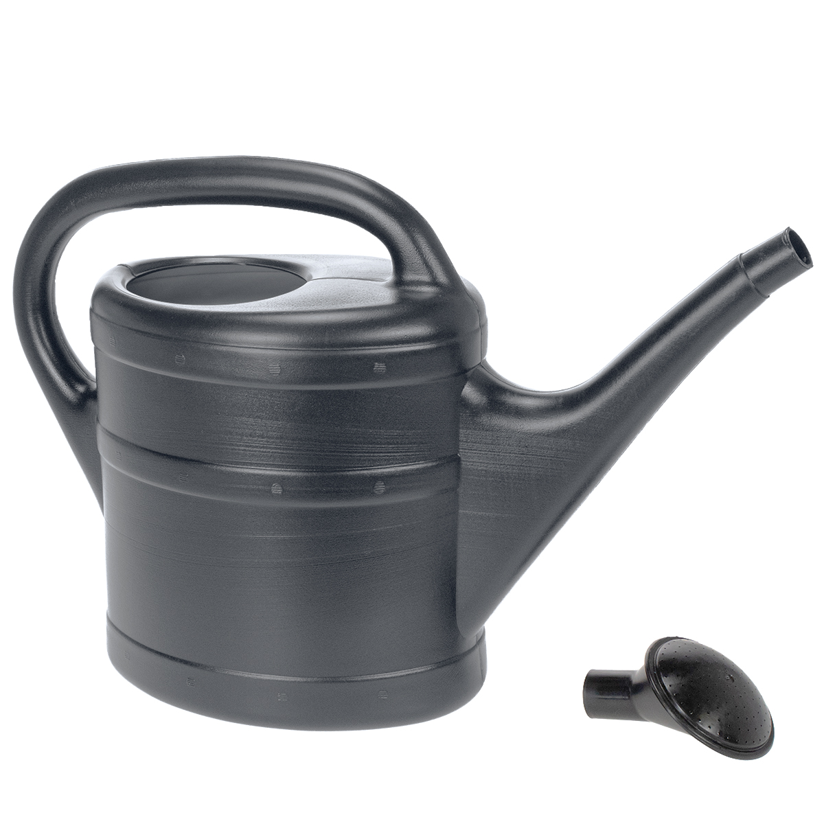 The anthracite watering can can be filled with up to 5 liters of liquid and comes with a rose including nozzle.
