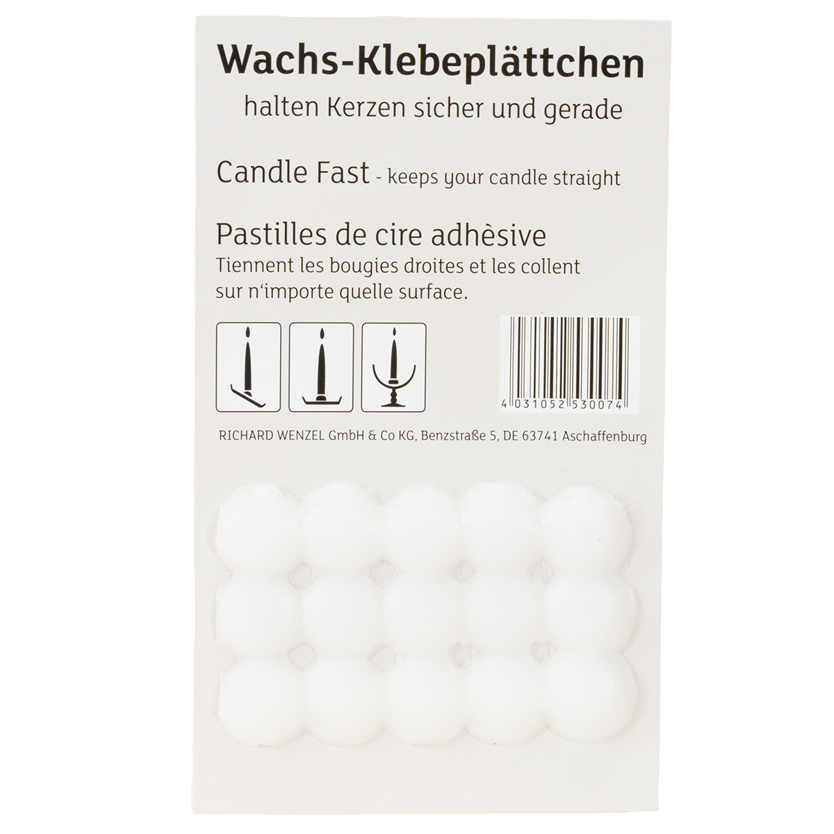 This means you can finally set up stick candles and tapered candles in table decorations and in arrangements in a beautifully straight and secure manner - even if the candle holder is actually too big. For pillar candles, use between one and three adhesive plates, depending on the size. Basically, you can use the adhesive wax to attach almost all candles, even stick candles to an inclined surface.