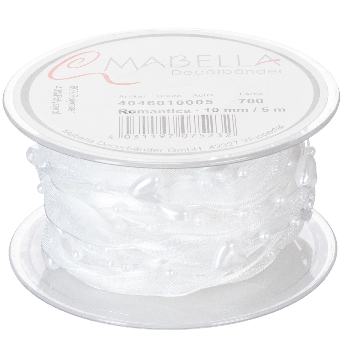 Product name: Wedding decoration organza ribbon white 10mm x 5m with hearts & pearls
