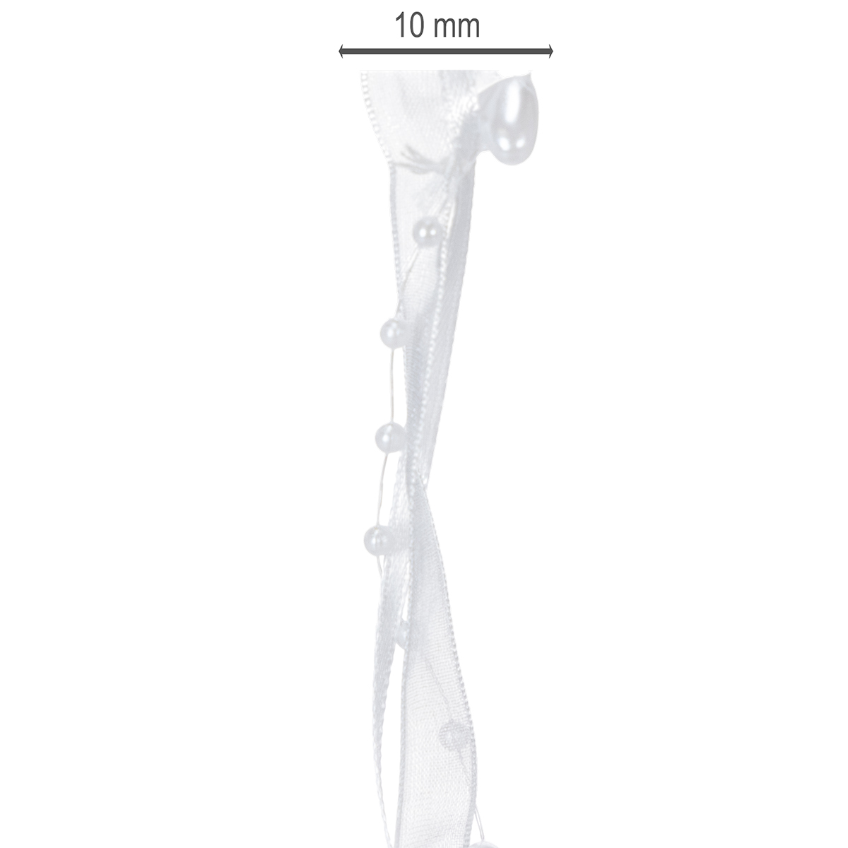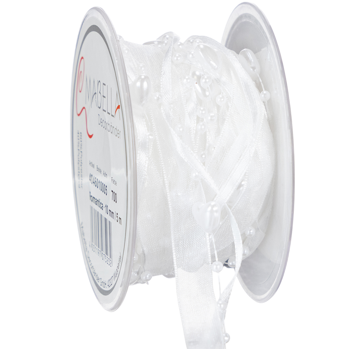 Wedding decoration organza ribbon white 10mm x 5m with hearts & pearls