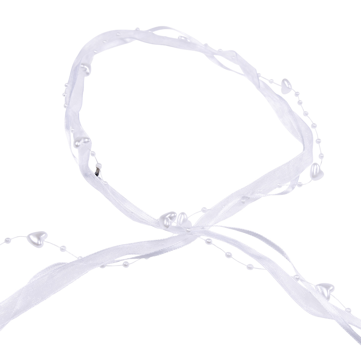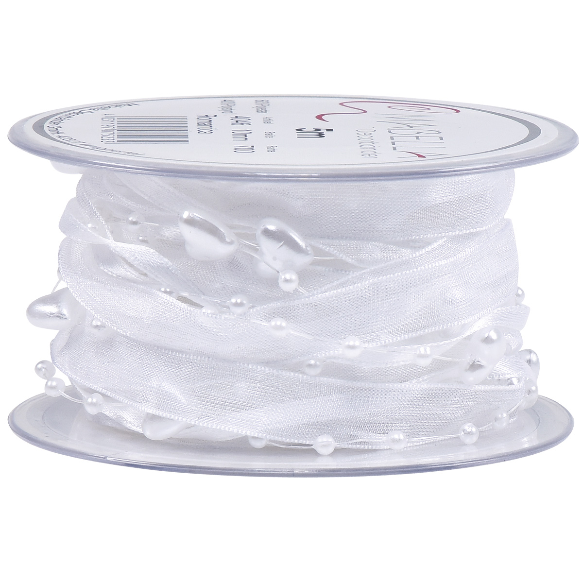 Product name: Wedding decoration organza ribbon white 10mm x 5m with hearts & pearls