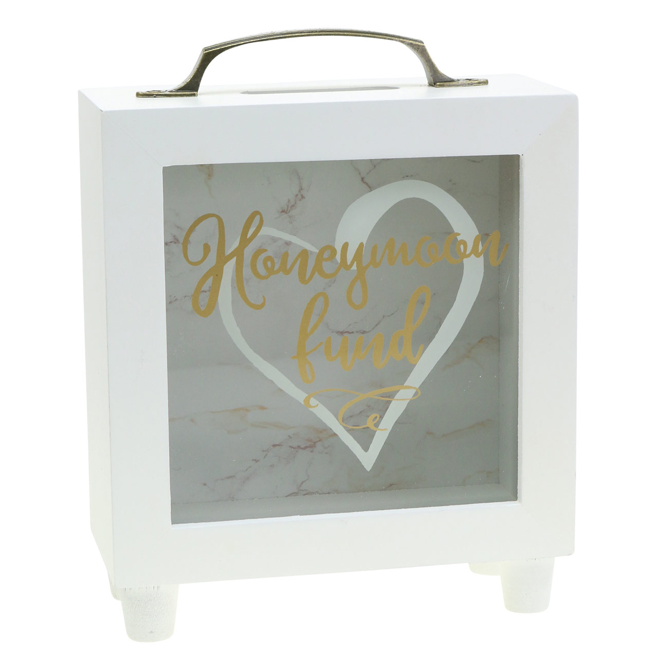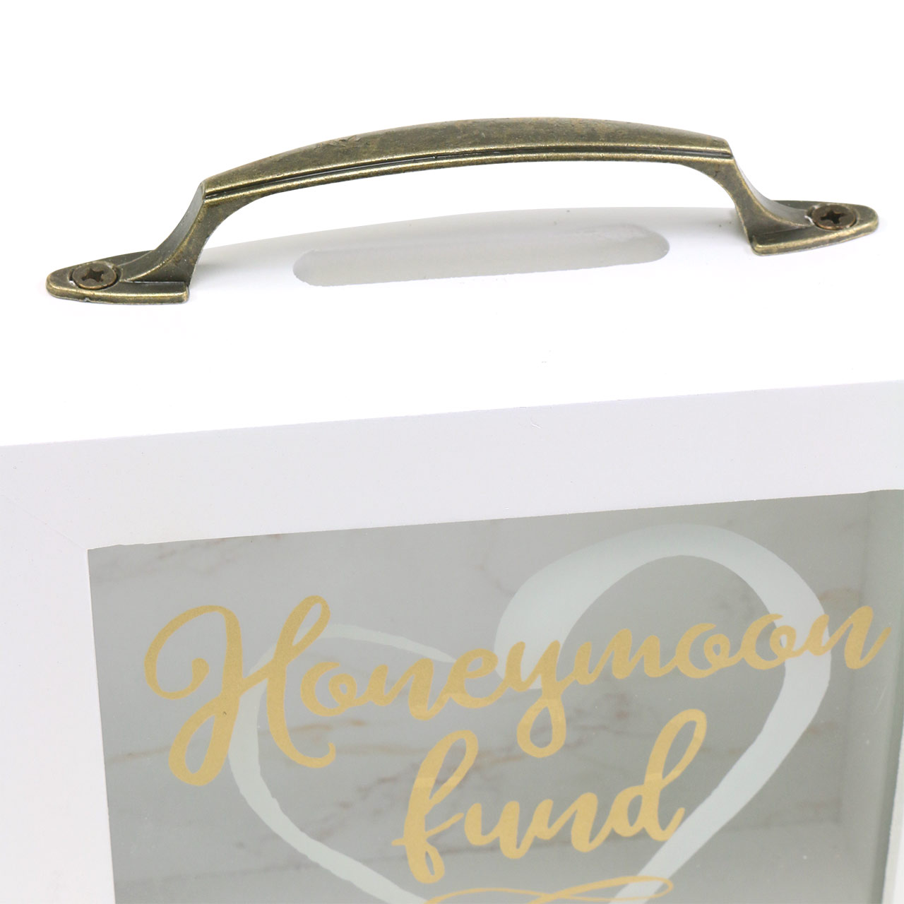 Wedding money box "Honeymoon Fund" wood with glass front white H15m