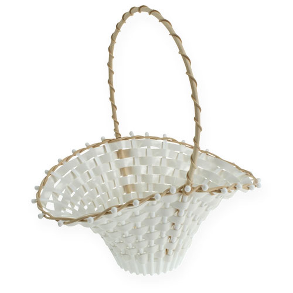 This enchanting wedding scatter basket, tailor-made for the special occasion, will add a touch of elegance and romance to your ceremony. With a size of 24 cm x 17 cm, it offers enough space for scattered flowers that will transform the bride and groom's path into a floral paradise. The basket, made of white, woven plastic with a bleached rattan edge and handle, impresses with its simple, yet graceful appearance. Ideal for flower girls, the "white wedding scatter basket" blends harmoniously into any wedding decoration and underlines the vintage charm of your big day. From classic to modern weddings, this decorative basket perfectly complements your theme world. Set stylish accents with this elegant accessory and let your wedding photos shine with it.