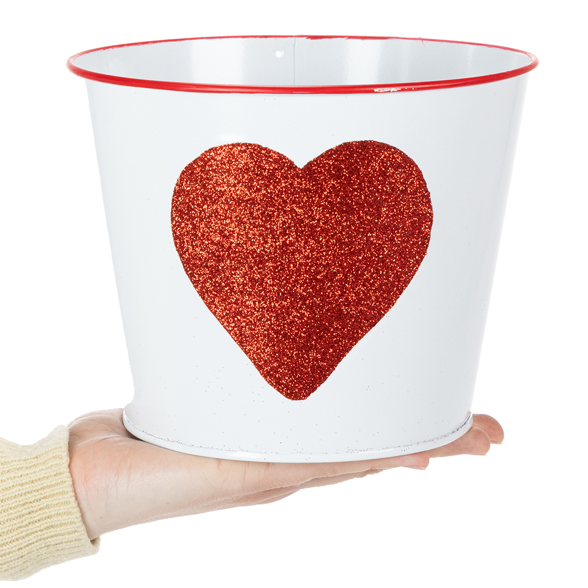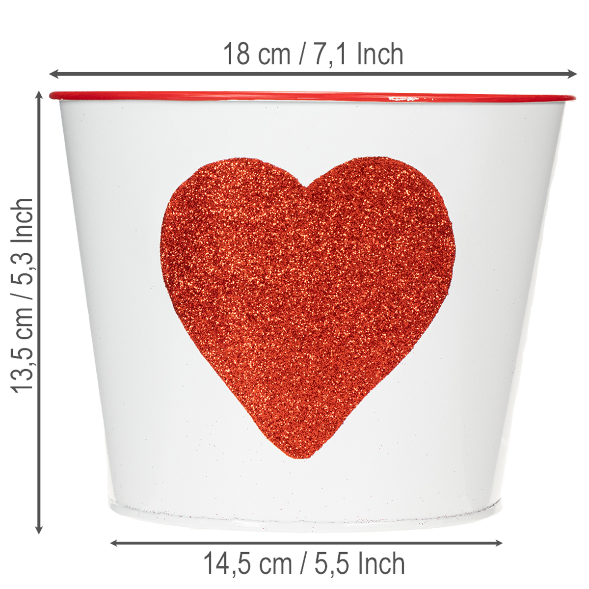 White flower pot with red heart, planter, Ø18cm H13.5cm
