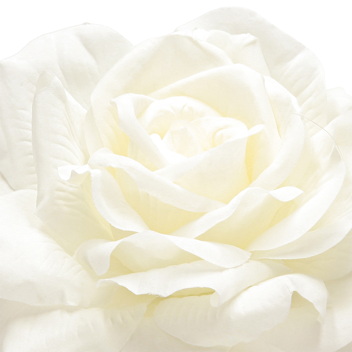 The stylish artificial rose in white has an approximate total length of about 72 centimeters with the stem. The diameter of the plump rose head is about 13 centimeters.